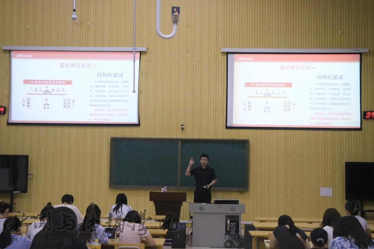 6月17日、20日、21日晚,新闻与传播学院于五综楼107教室开展2025届毕业生就业指导系列课程。本次课程由中公教育金牌导师肖钧泽老师主讲。