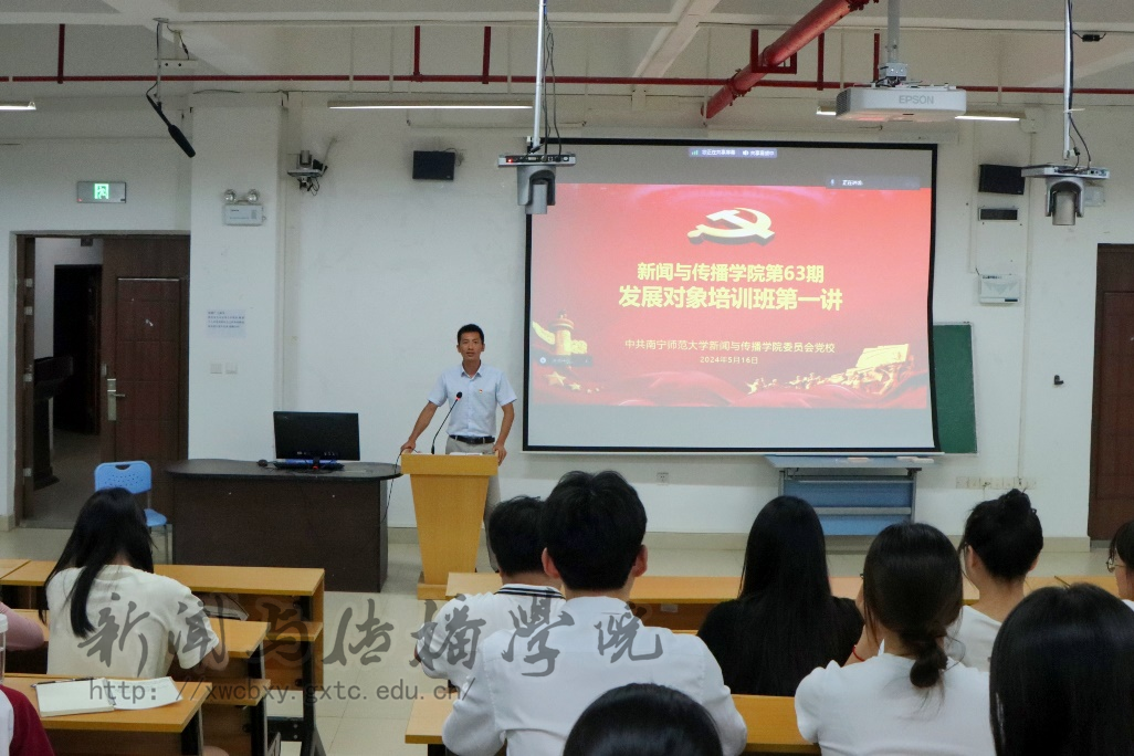 5月16日晚,新闻与传播学院第63期发展对象培训班第一讲在文综楼615室召开,本次党课由学院党委组织委员廖林泉主讲。
