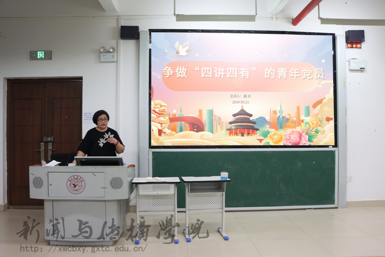 5月21日晚,新闻与传播学院第63期发展对象培训班第二讲于文综901室举行。此次培训班主题为“争做‘四讲四有’的青年党员”,由学院党委书记聂卉主讲。