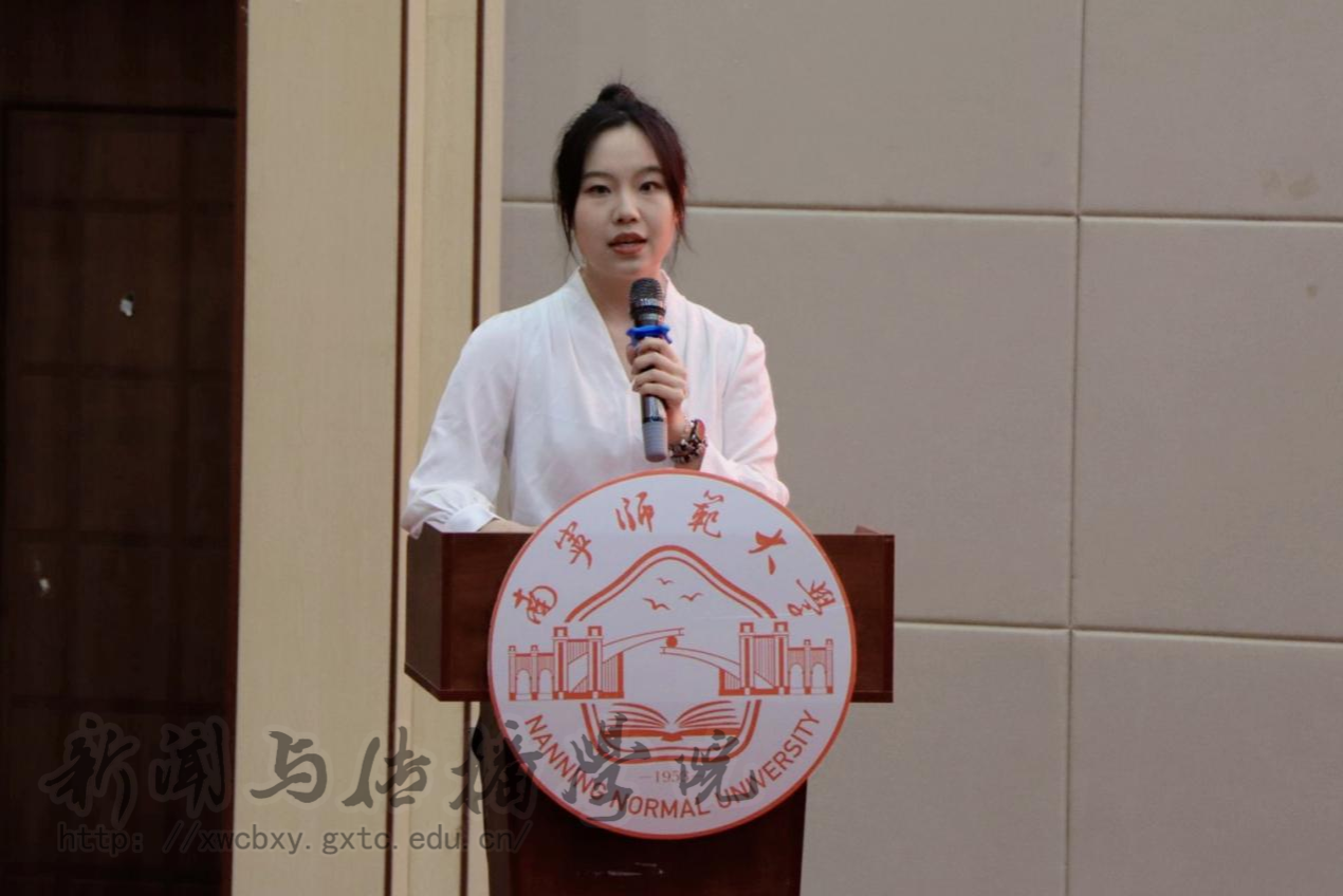 会议伊始,全体参会人员奏唱国歌。接着,新闻与传播学院本科生第二党支部预备党员余依蔓作为学生代表上台发言。她表示,作为一名预备党员,要在思想上不断加强政治理论武装,提高自己的思想水平和政治素养,在行动上要以党员的标准严格要求自己,争取成为一名优秀的共产党员。