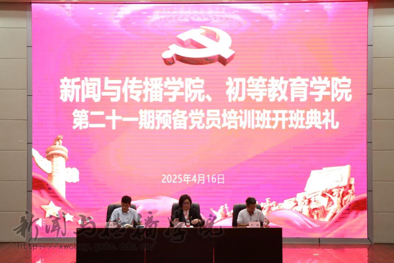 4月16日晚,新闻与传播学院、初等教育学院在文综114报告厅联合举办第二十一期预备党员培训班开班典礼。新闻与传播学院党委书记聂卉、新闻与传播学院党委组织员廖林泉、初等教育学院党委组织员何聪以及两个学院的预备党员到场参加。