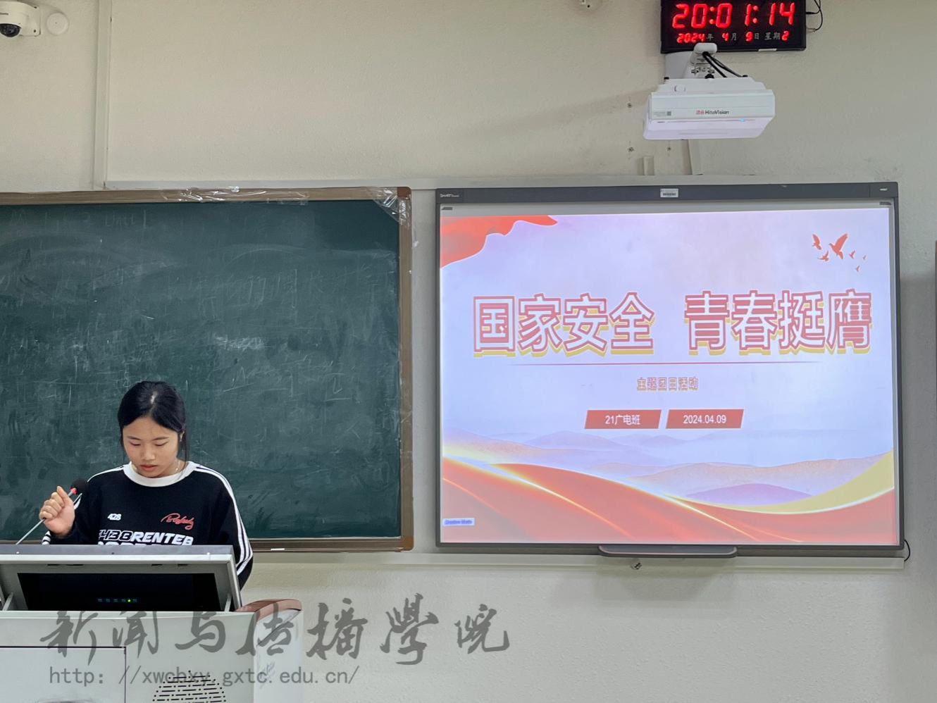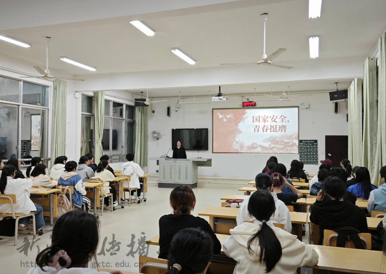 此外,学院团委书记李樱花老师到播音与主持艺术学2023级2班团支部进行生态安全主题宣讲。她通过一系列生动的案例,让大家深刻认识到生态安全在国家安全中的重要地位。并提倡同学们在今后的学习生活中,从身边小事做起,积极参与环保活动,以实际行动保护生态安全。