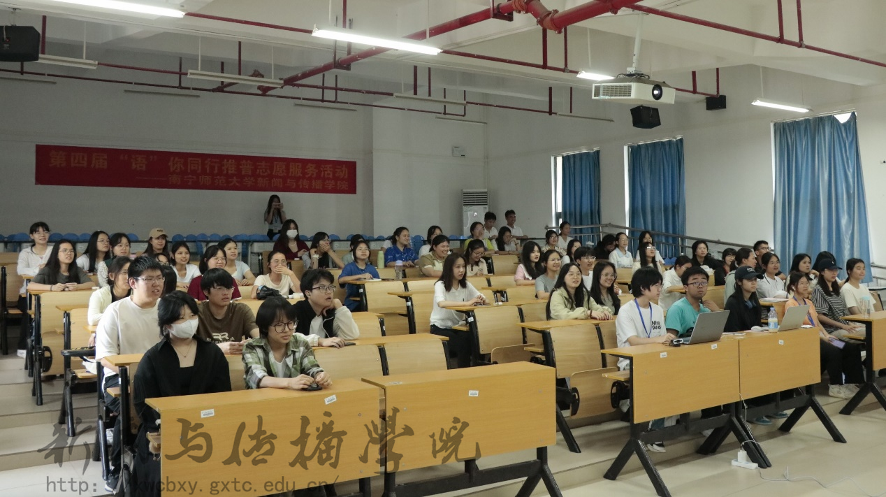 4月23日下午,新闻与传播学院于文综楼915教室开展第四届“语”你同行志愿服务活动之“能说会道”主持技巧培训第一讲。此次培训课由22播主班王婧怡主讲,分线上、线下两种渠道同步进行,共有11个学院335个同学参加。