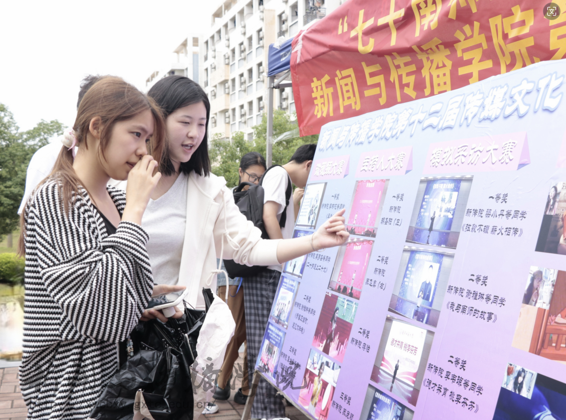 为展示第十二届传媒文化节学生优秀作品,丰富校园文化活动。4月23日中午,我院于五合校区食堂一楼门口进行第十二届传媒文化节成果展示。