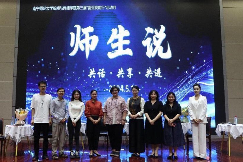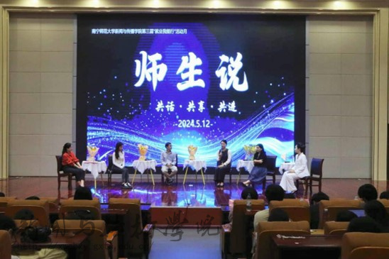 5月12日19时,新闻与传播学院于文综楼114报告厅开展“师生说”访谈会。这次访谈邀请了两名教师——新闻系主任林秀梅,广电系主任陈秋凌,和三名毕业生代表——2012届广播电视新闻学何汉立,2014届播音与主持艺术专业黄莹以及2022届新闻与传播专业蒋莉。