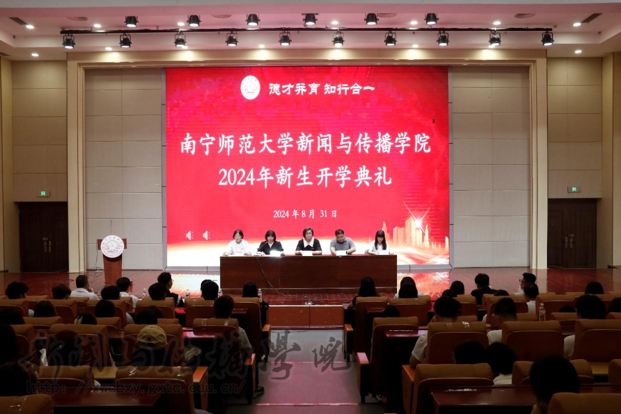 8月31日15时30分,新闻与传播学院2024级新生开学典礼于五合校区文综楼114报告厅举行。新闻与传播学院党委书记聂卉、副院长(主持行政工作)梁颖涛、党委副书记黄敏、副院长周飞伶、院长助理宋丽丽出席本次开学典礼,2024级各班班主任、辅导员以及2024级全体新生参加开学典礼。典礼由黄敏副书记主持。