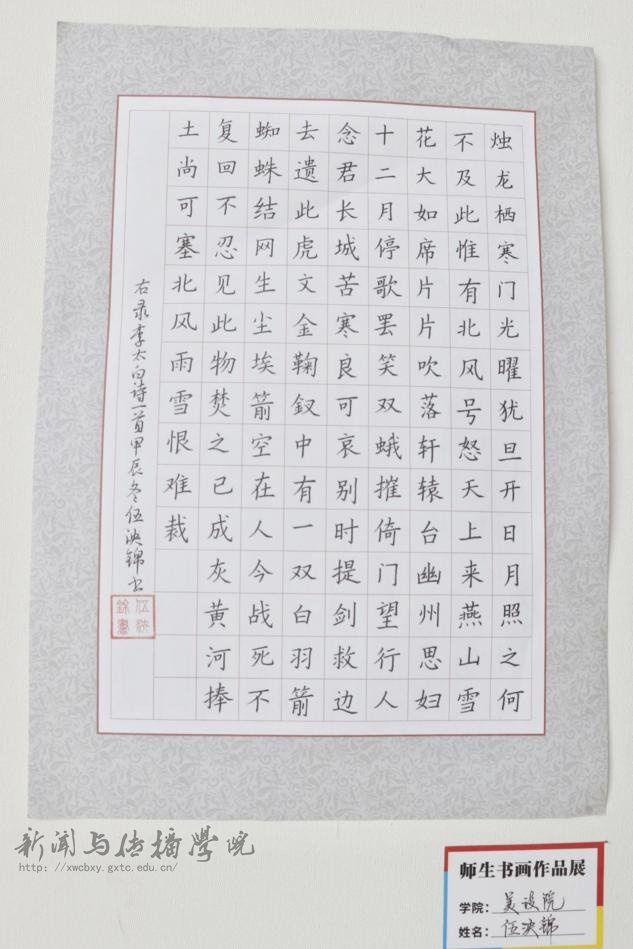 1月7日上午,新闻与传播学院在理综楼二楼平台隆重举行了以“奋进新征程,书画绘改革”为主题的书法绘画大赛及第六届师生书画作品展。此次活动得到了新闻与传播学院、初等教育学院、美术与设计学院等15个学院师生的热烈响应,共征集到作品381件。