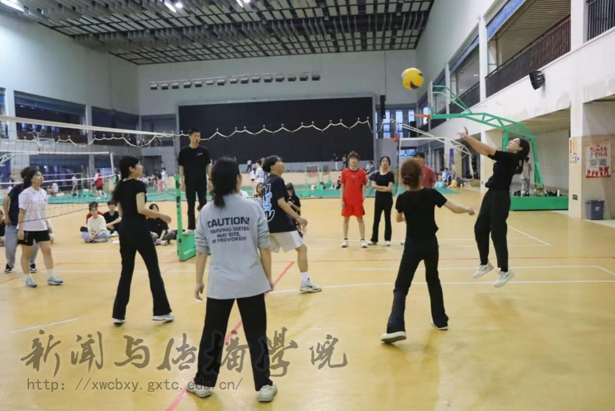 4月15日傍晚,新闻与传播学院2025年“新闻人杯”气排球赛第七场、第八场和第九场在学校体育馆1、2号排球场激烈开赛。