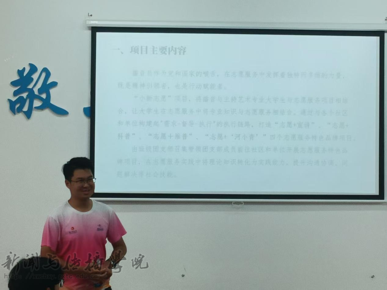 参与此次答辩的共青团特色活动项目类型多样。例如,在志愿服务方面,2023级播音与主持艺术专业2班团支部申报了“小新‘志愿行’品牌活动”项目;在党团史学习方面,2024级广播电视学团支部申报了“‘共话团史,点亮青春’校园团史学习活动”项目;在乡村振兴方面,2022级新闻专升本1班团支部申报了“乡村云课堂,新闻新力量——助力乡村教育与文化振兴行动”项目;在结合专业特色方面,2024级新闻学团支部申报的“新媒视界・微光计划——新闻学团支部实践创作行”新媒体传播项目。不同专业的学生充分发挥自己的专业优势和特长,为项目的策划和实施注入了新的活力。