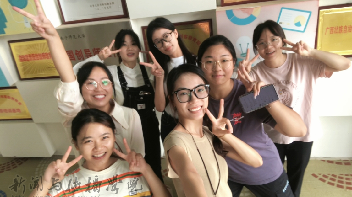 (传媒文化节微视频大赛团队合照李柳花:左一杏色条纹衣服)