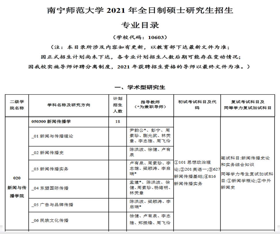 1.南宁师范大学2021年全日制硕士研究生招生专业目录