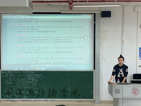 12月15日下午,柳州市艺术剧院歌剧舞剧团副团长彭婷婷一行来到新闻与传播学院,面向2020级、2021级播音与主持艺术专业的学生开展主持人招聘活动。