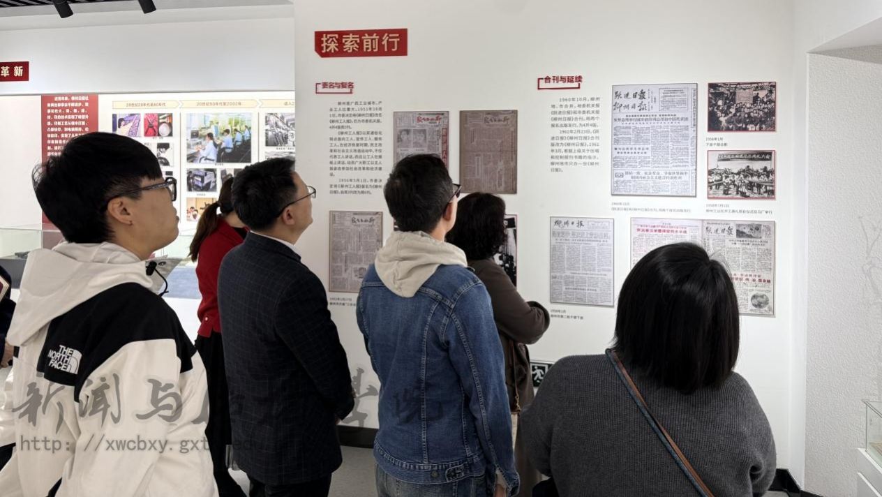 学院调研团队在柳州市融媒体中心总编辑李斌、党委专职副书记白雪以及相关部门领导的陪同下参观了书报博物馆,详细了解了融媒体中心的历史沿革及发展历程。