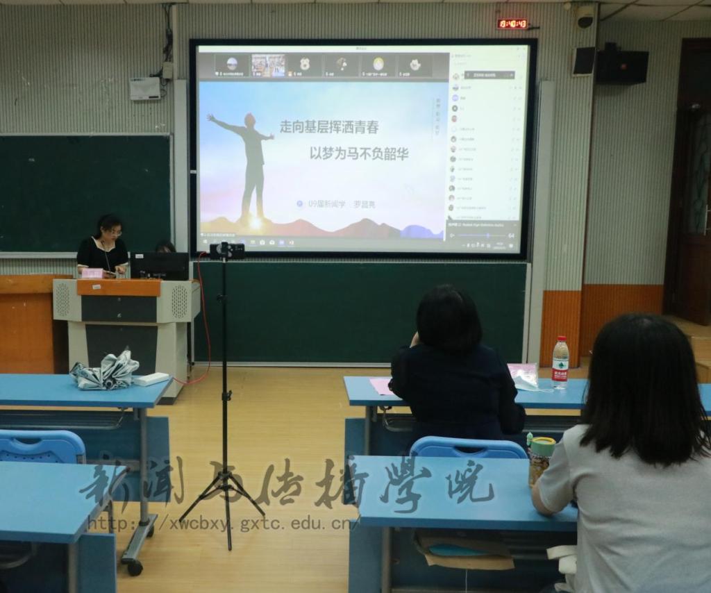 课上,2009届新闻学专业校友、河池日报社新媒体编委罗昌亮以“走向基层挥洒青春,以梦为马不负韶华”为主题,从“新闻人应坚持新闻梦想”引入,分析了从事新闻记者行业的好处,并鼓励同学们大胆走向基层。接着就自己的工作经验,总结了三点从业建议:一是从零起步,从头做起;二是重在务实,用心做事;三是勇挑重担,心怀家国。